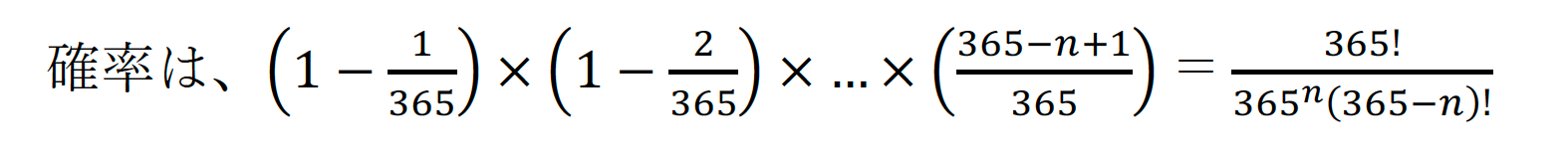 誕生日が全員バラバラになる確率は?
