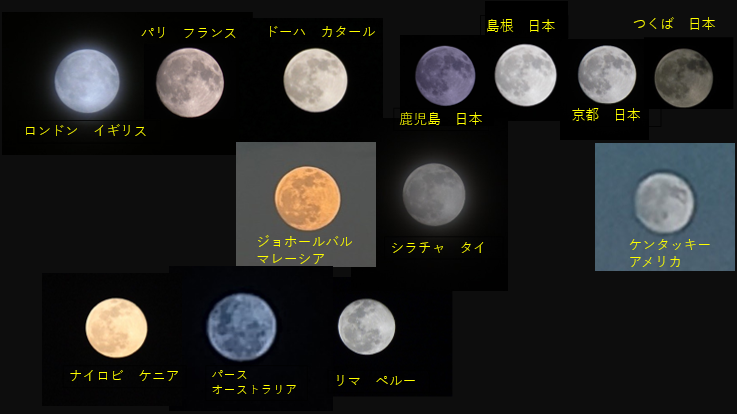 月を拡大すると模様が見えてきます。世界各地で月の模様の見え方が違っていました。